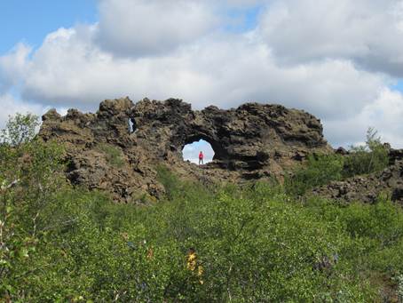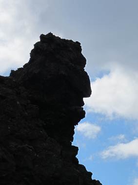 Das Lavafeld Dimmuborgir mit seinen bis zu 20m hohen Felsen.