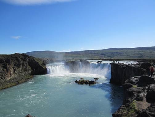 Auf der Fahrt nach Akureyri kommt man am Godafoss, dem Götterfall, vorbei.