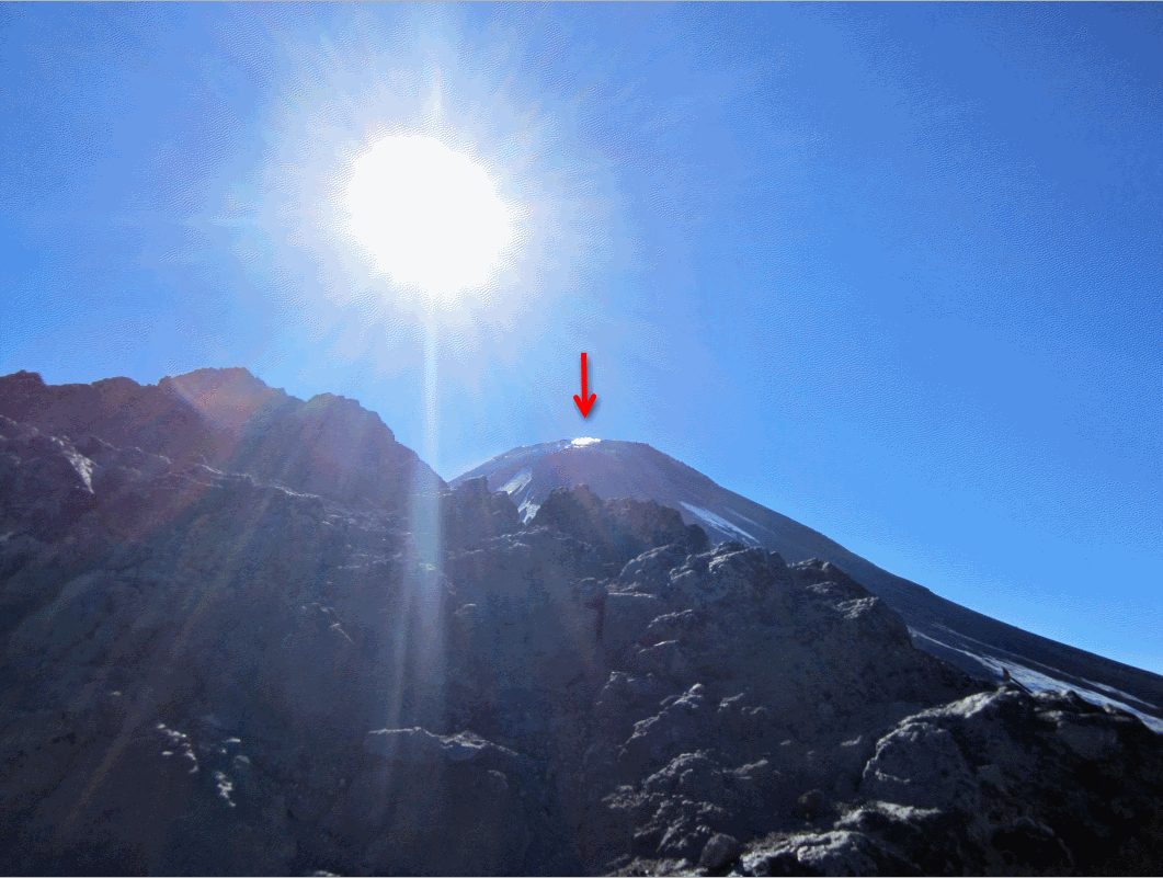 Zwei Stunden vor dem Ziel sieht der Berg so aus.