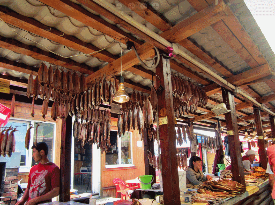 Zünftiger Grillabend am Baikal mit den (orts)üblichen Getränken