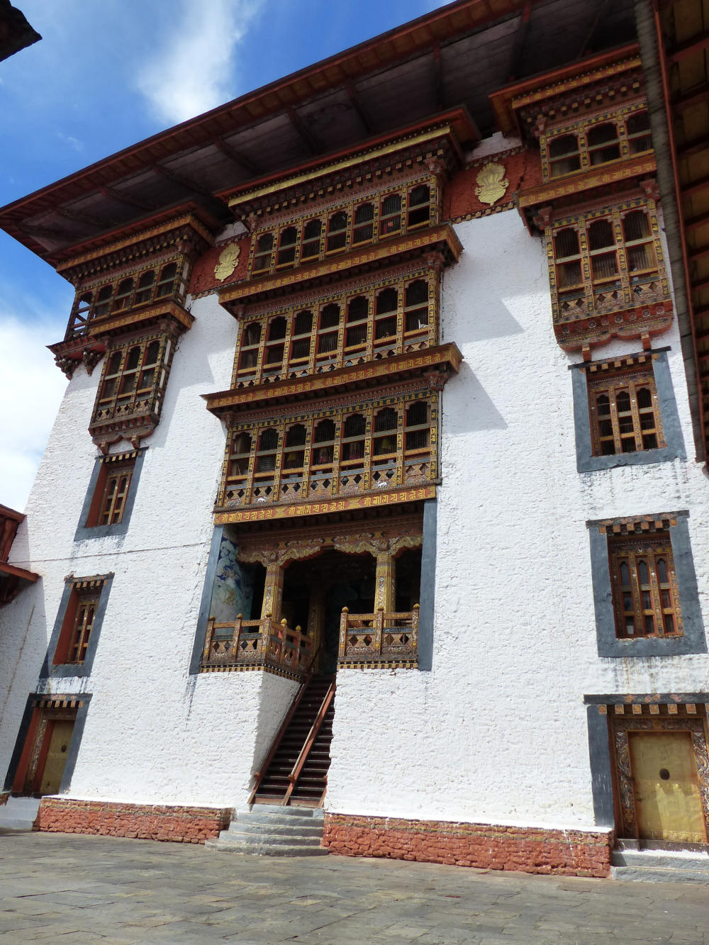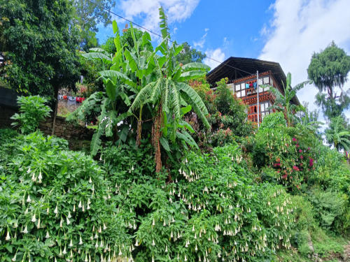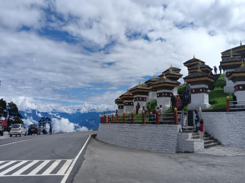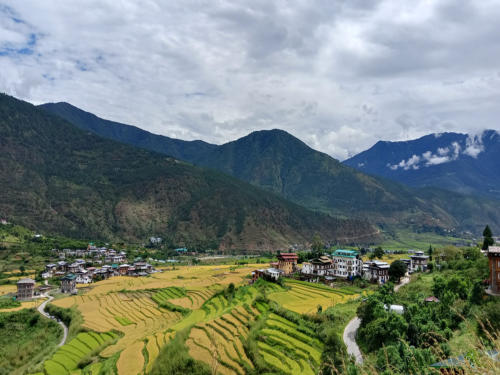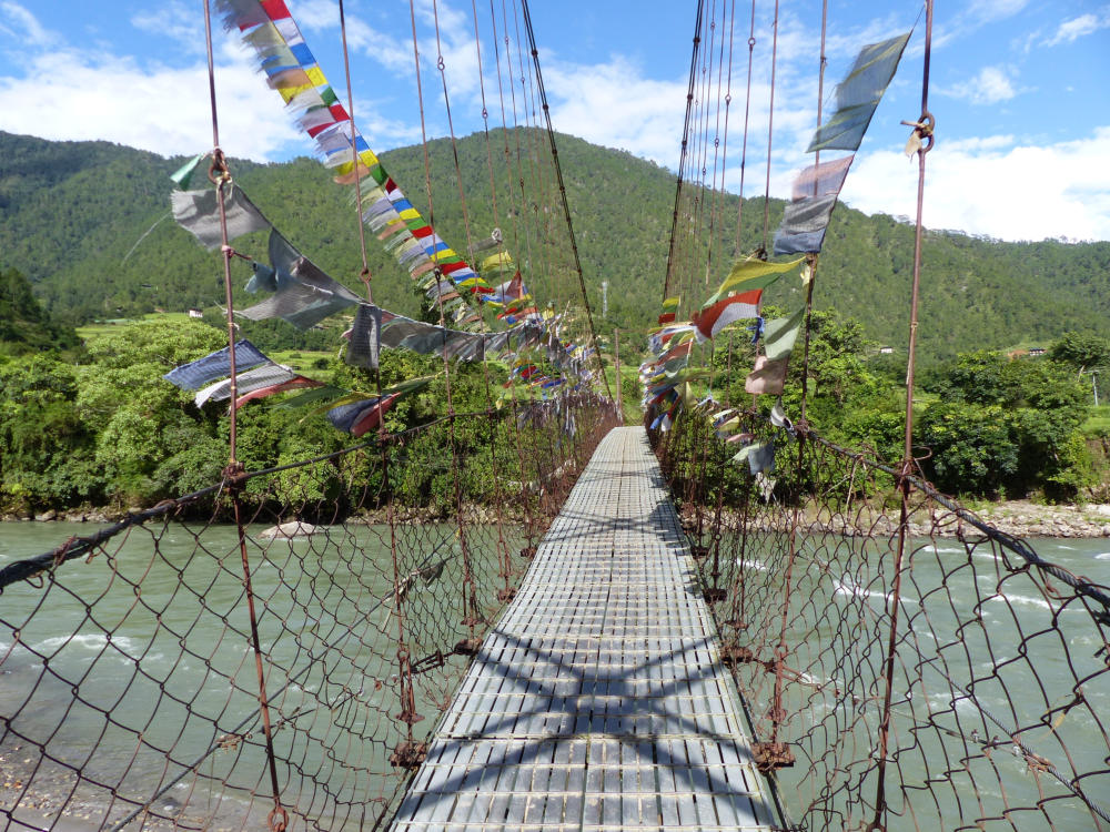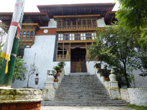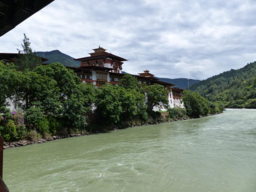 Heute ging es über den 3100 m üNN hohen Dochula Pass. Bei durchaus brauchbaren Wetter war etwas von den Schneebergen des Hoch-Himalaya zu sehen. Danach ging es 2000m hinab nach Punakha, der alten Hauptstadt Bhutans, malerisch am Zusammenfluss von Pho Chhu und Mo Chhu gelegen. Die Stadt hat nur 6000 Einwohner und ein sehr angenehmes subtropisches Klima.Hauptattraktion ist eine der prächtigsten Anlagen im Königreich – der über 400 Jahre alten Punakha Dzong.