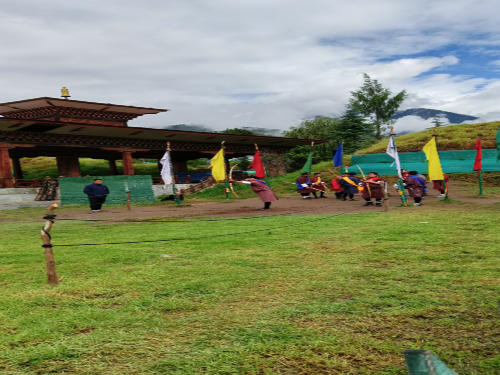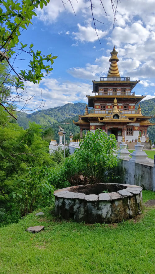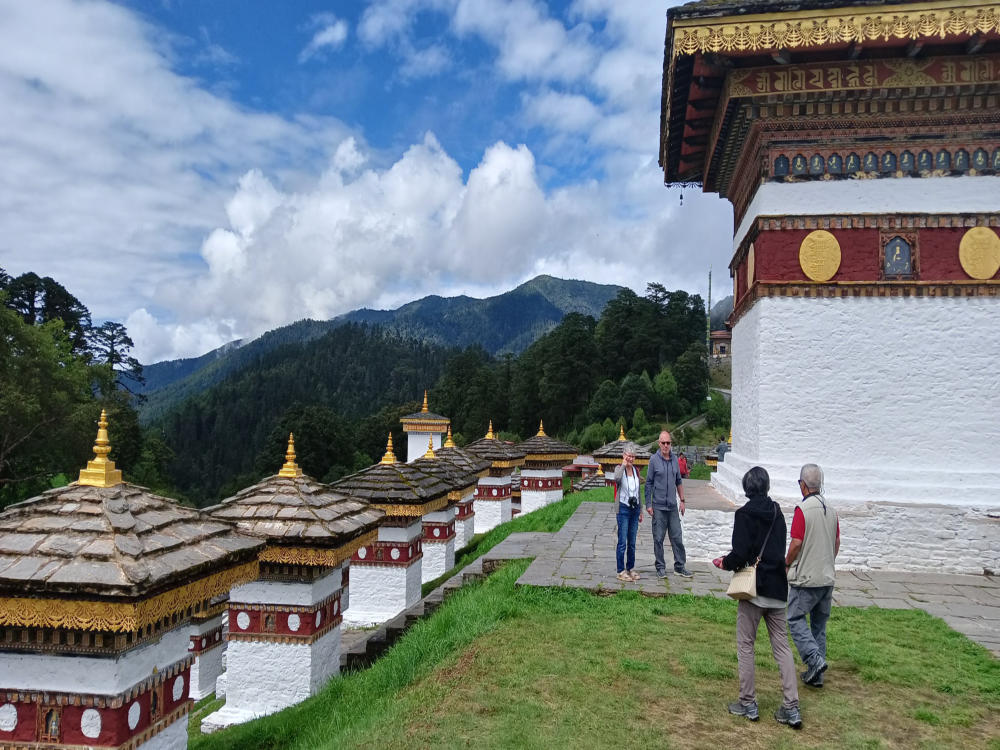 Eine wunderschöne Wanderung durch Reisfelder führte uns zum Aussichtspunkt auf den Khamsun Yulley Namgyel Chörten.Bogenschießen ist der Nationalsport in Bhutan - Hier Bilder von einem Wettkampf im Thimphu. Wanderung durch das Dorf Teoprongchu zum Kloster Chimi Lhakhang. Es ist als "Fruchtbarkeitstempel" bekannt. Hierhin kommen Pilger, insbesondere Frauen, die um Segen bitten, um Kinder zu bekommen. Die Tradition im Kloster ist es, den Pilgern mit einem 25 cm großen Holzphallus (erigierter Penis) auf den Kopf zu schlagen.