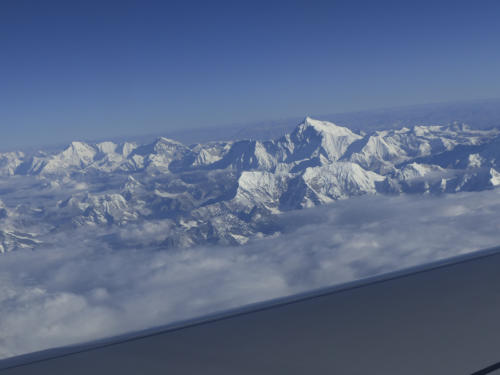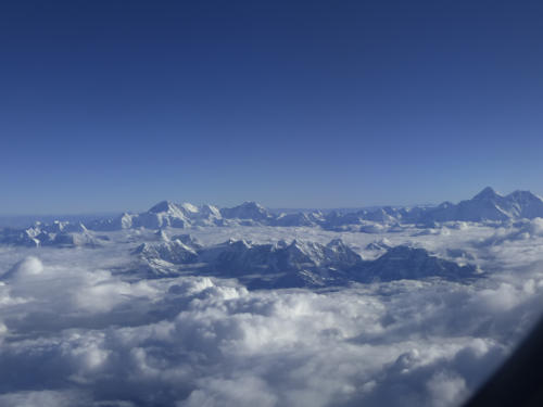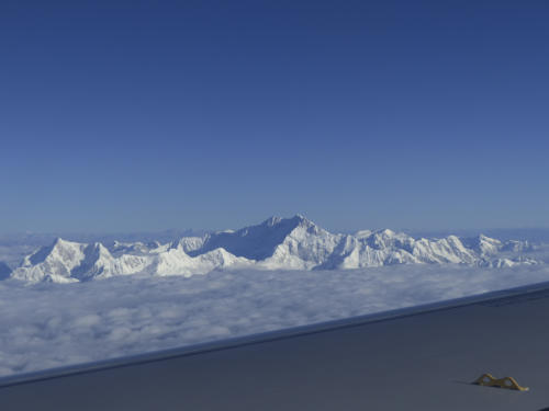 Wir hatten Glück ….. Bei besten Wetter gab es herrliche Aussichten auf sage und schreibe sechs der 14 Achttausender des Hoch-Himalaya.
