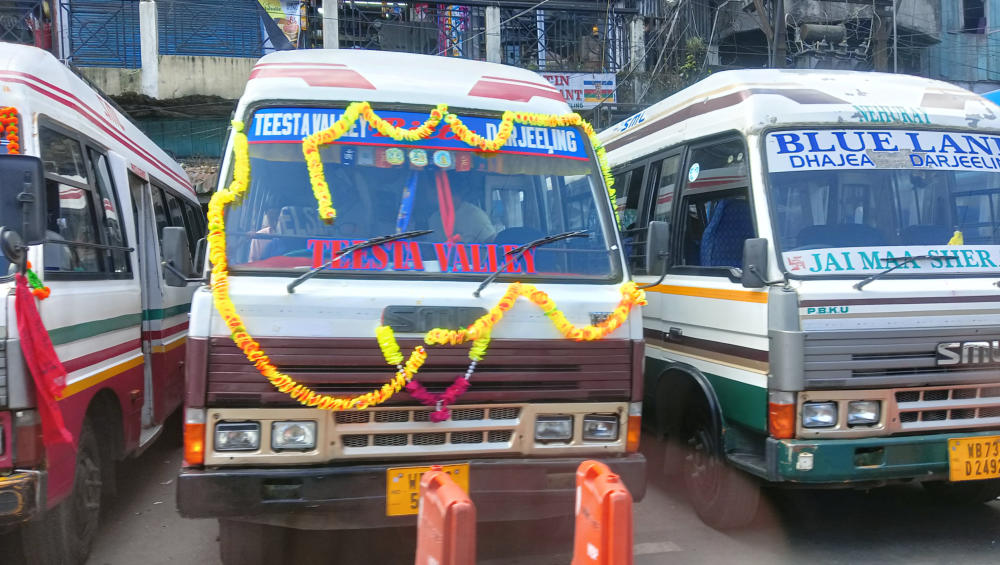 Die Reise beginnt am Flughafen Bagdogra nahe der „Kleinstadt“ Siliguri (650000 Einwohner) im Flachland des indischen Bundesstaates Westbengalen. Durch die quirlige Stadt ging es anschließend auf einer Serpentinenstraße in die Berge des Vor-Himalaya in die berühmte Teestadt Darjeeling (2185 m),