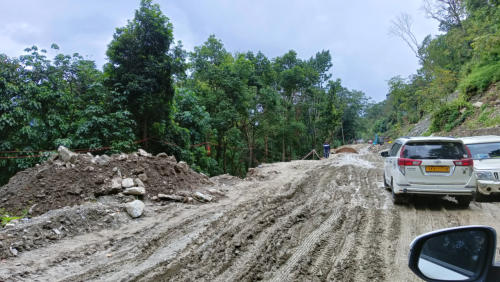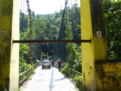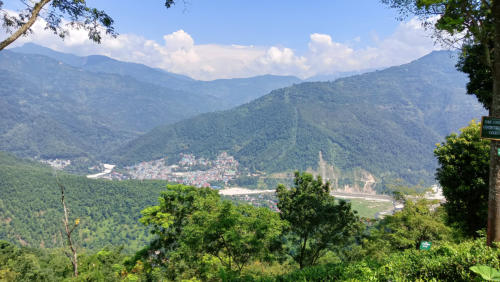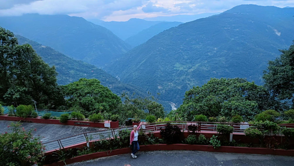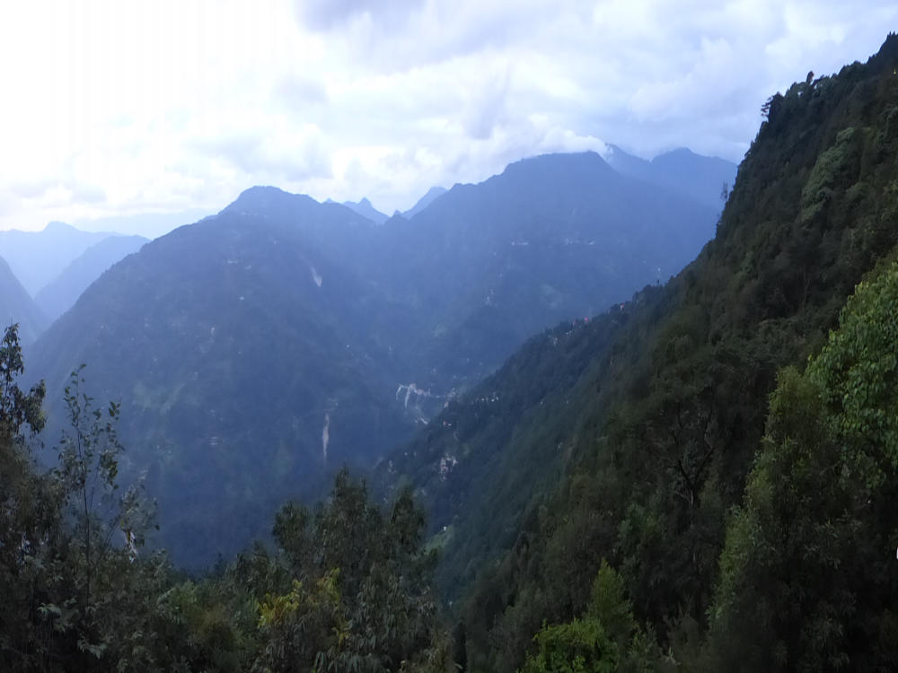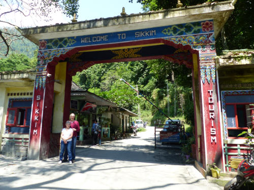 Eine tolle Fahrt von Darjeeling nach Pelling stand auf dem Programm. Von 2200 m ü NN ging es vorbei an zahllosen Teeplantagen hinab ins 300m ü NN gelegene Tal des Rengeet Flusses zum Grenzübergang nach Sikkim. Nach der aufwändigen Grenzkontrolle ging es ins ehemalige Königreich Sikkim, heute mit nur 600.000 Einwohnern der kleinste Bundesstaat Indiens. Die Straße folgte zunächst dem Flusslauf. Dann ging es auf 21 km Länge mit abenteuerlicher Straßenführung steil bergauf zum 2100 m ü NN gelegenen Kloster Pemayangtse.