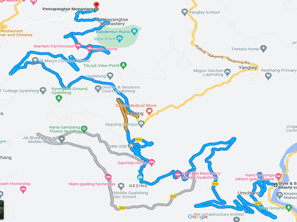 Das buddhistische Kloster liegt auf einem Berg mit toller Sicht, mit etwas Glück auch zu den Schneeberger des Himalaya. Es ist eines der ältesten, um 1650 gegründet, und das wichtigste Kloster in Sikkim. Die weitläufigen Rabdentse-Ruinen sind Überreste einer Palast- und Klosteranlage die 1814 zerstört wurde. Hier war die mittelalterliche Hauptstadt des alten Königreichs Sikkim und die Ruinen sind geschichtliches Symbol für endlose Machtkämpfe, Könige, feindliche Nachbarn und verbannte Herrscher.