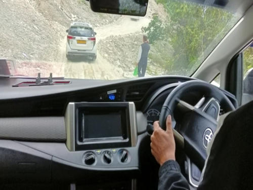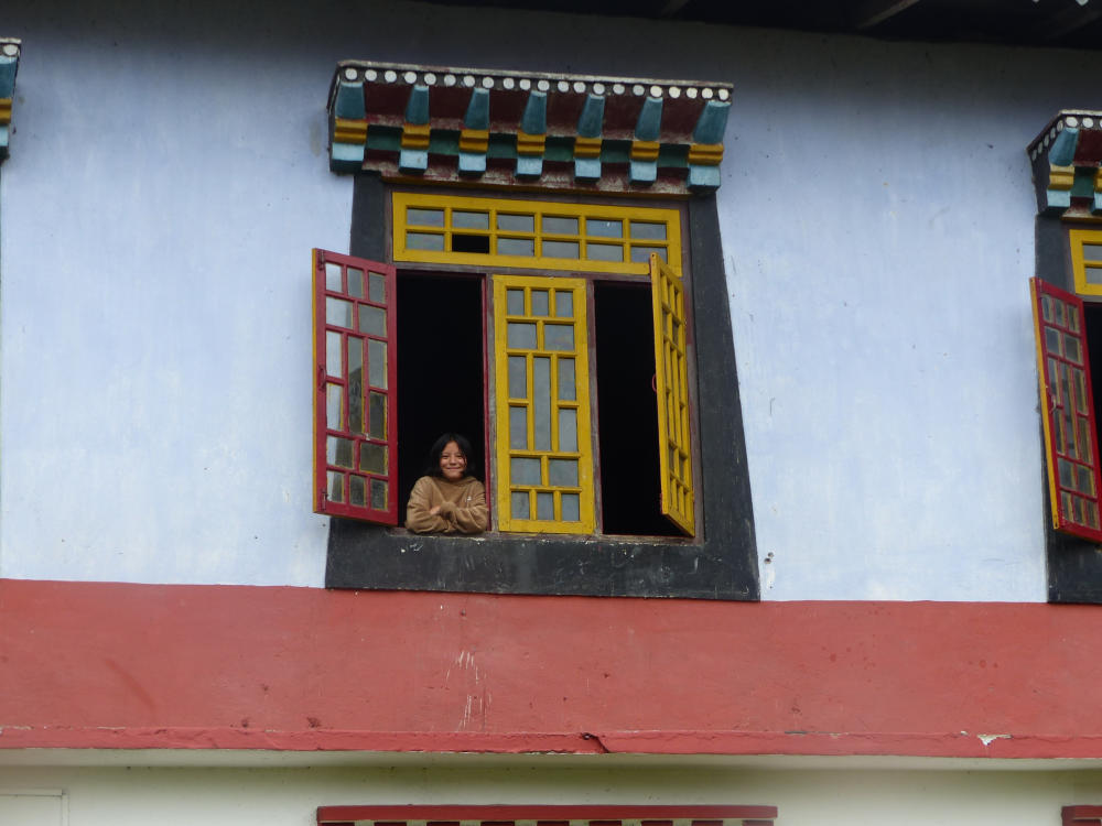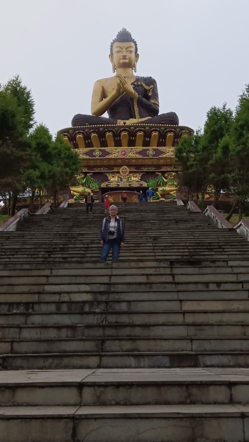 Und wieder ging es hinab ins Tal und auf der anderen Seite hinauf auf ebenfalls 2100m ü NN ins Städtchen Ravangla zum Buddha-Park. Diese Anlage wurde erst 2013 erbaut und verfügt über eine 40 m hohe Buddha-Statue,, die aus 60 Tonnen Kupfer gefertigt wurde.Nahe dem Dorf Bakhim gibt es ein schlichtes Kloster, welches als Kinderheim für Waisenkinder dient und von einer schweizer Hilfsorganisation unterstützt wird. Es ist das einzige Bön-Kloster in der Region und hat eine rund 18.000 Jahre alte Religion, die quasi der Vorläufer des tibetischen Buddhismus ist.