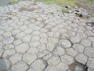 Steinfußboden aussieht, sind sechseckige Basaltsäulen, von der Natur so