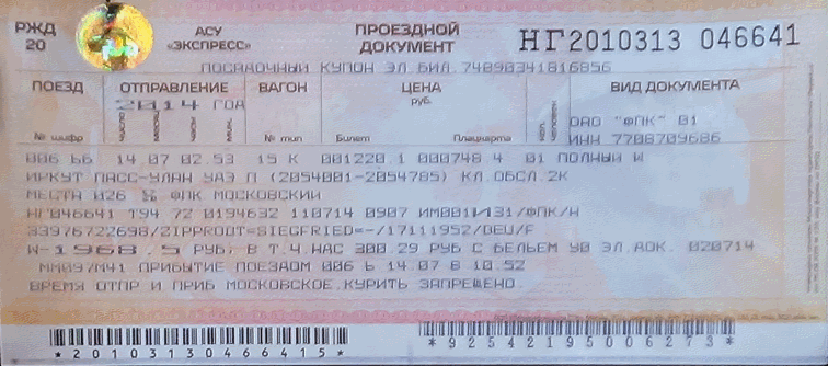 Fahrt mit der Transibirischen Eisenbahn von Irkutsk nach Ulan Ude (455km)