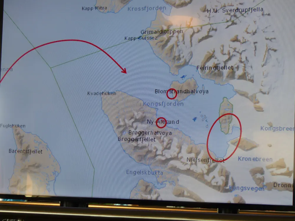 Unsere erste Anlandung fand im Kongsfjord an der ehemaligen Bergbausiedlung Ny London statt. Hier wurde kurze Zeit Mamor abgebaut. Eine kleine Wanderung brachte erste Eindruecke ueber die Geschichte, Flora und Fauna.Danach kreuzte das Schiff in den hinteren Teil des Kongsfjord wo der Kronebreen, der Kronengletscher, in den Fjord kalbt.